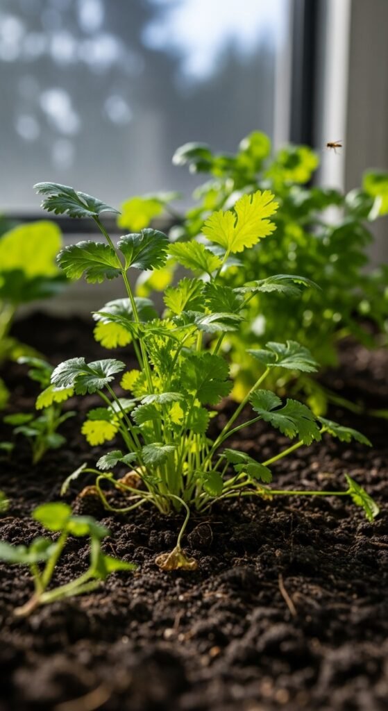 Plant cilantro seeds every few weeks for continuous harvest, in partial shade to delay bolting. Use fertile, moist soil and thin seedlings to 6 inches apart. For drying tips once harvested, explore drying herbs at home. Pick leaves before flowering for the best flavor, ensuring a steady supply throughout the season.