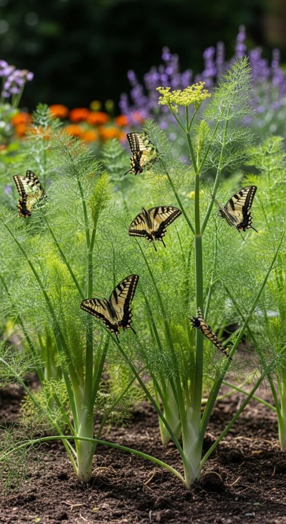 Fennel, an annual herb with feathery leaves and licorice taste, enhances annual herbs lists for fish, sausages, and salads. Bulb types provide extra harvest options.
