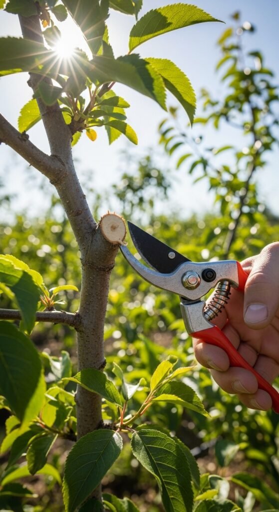Aim for a modified central leader or open vase shape, depending on your tree’s age and type. Remove competing leaders and encourage wide-angled branches. Why shape strategically? A well-structured tree supports heavy fruit loads, improves harvest access, and promotes even ripening through balanced light distribution.