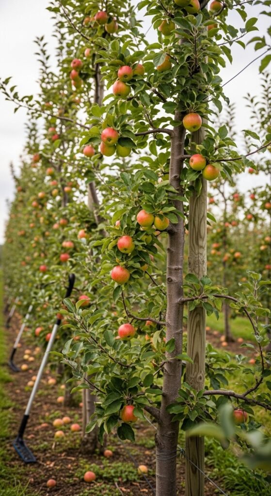 Remove vertical water sprouts and root suckers promptly, as they sap energy from productive parts. Why remove? They don’t bear fruit and create clutter, diverting nutrients from apples.