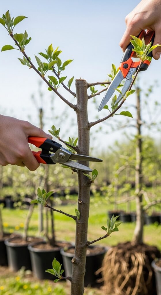 How: Head back the central leader by one-third, thinning side shoots. In poor soil, prune lighter to avoid shock. Edge cases include container-grown treesβprune roots too if pot-bound. Enjoy vigorous establishment and early fruiting potential. Integrate with fruit tree fertilizing for balanced nutrition.