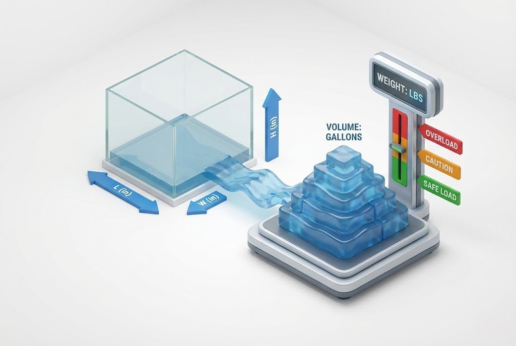 Water is deceptiveβit looks light, but it weighs over 8 pounds per gallon. Use our Fish Tank Volume & Weight Calculator below to determine the exact capacity of your setup and ensure your floor can handle the load.