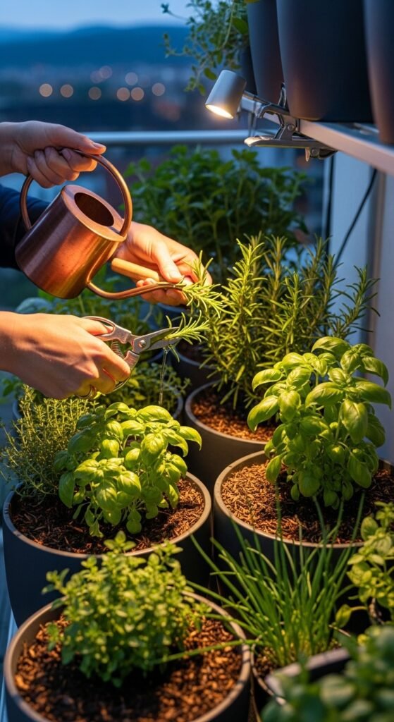 Most herbs require at least 6 hours of direct sunlight daily. Monitor your balcony’s exposure and adjust plant positions or use reflective surfaces to enhance light distribution.
