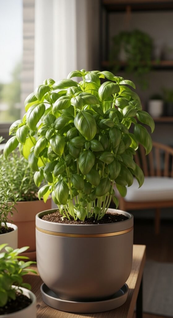 Key benefits include its ability to repel pests naturally and its high yield in compact spaces. Basil thrives in containers because it prefers well-drained soil and ample sunlight, making it perfect for balconies or windowsills. You will appreciate how it enhances your meals with fresh, homegrown taste while requiring minimal effort beyond regular pinching to encourage bushiness.