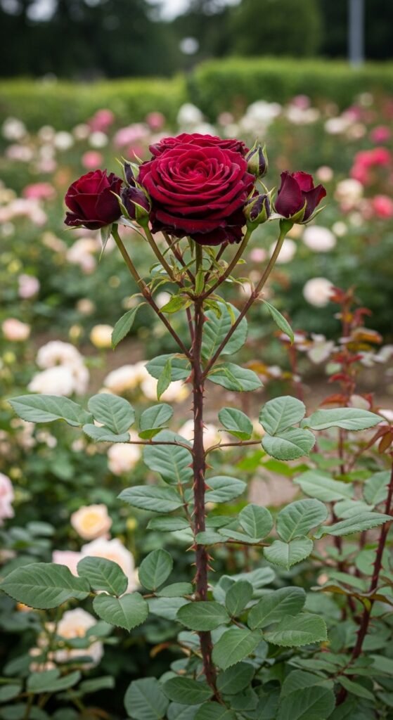 Imagine the romance of a black rose gracing your gardenβthe Black Baccara hybrid tea rose delivers just that with its deep crimson buds that unfurl into near-black velvety blooms. Reaching 4-6 feet tall, this thorny beauty produces large, fragrant flowers ideal for cutting.