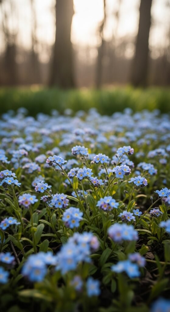 Their symbolic meaning of remembrance adds emotional depth, while they spread gently to cover ground. Ideal for woodland gardens, they attract beneficial insects. For perennial inspirations, check our overview of perennial flowers.