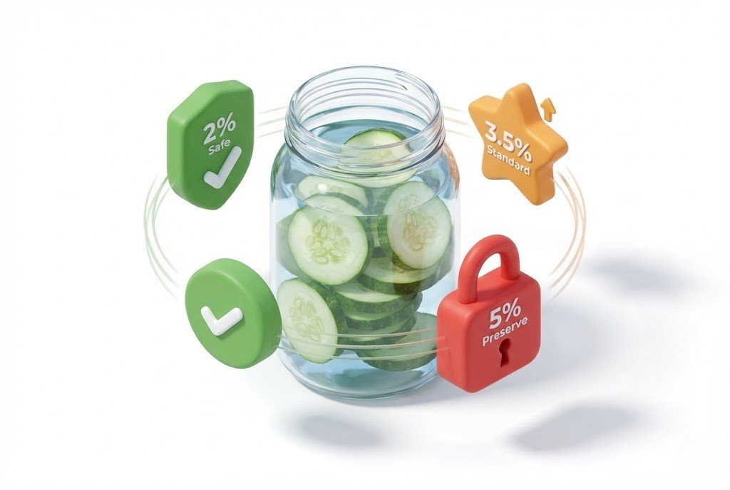- 3.5% (Standard): The "Goldilocks" zone for most garden vegetables and refrigerator pickles.