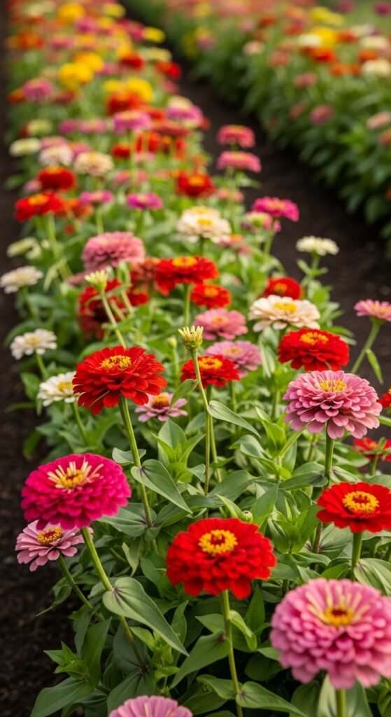 3) Cheerful Zinnia Borders