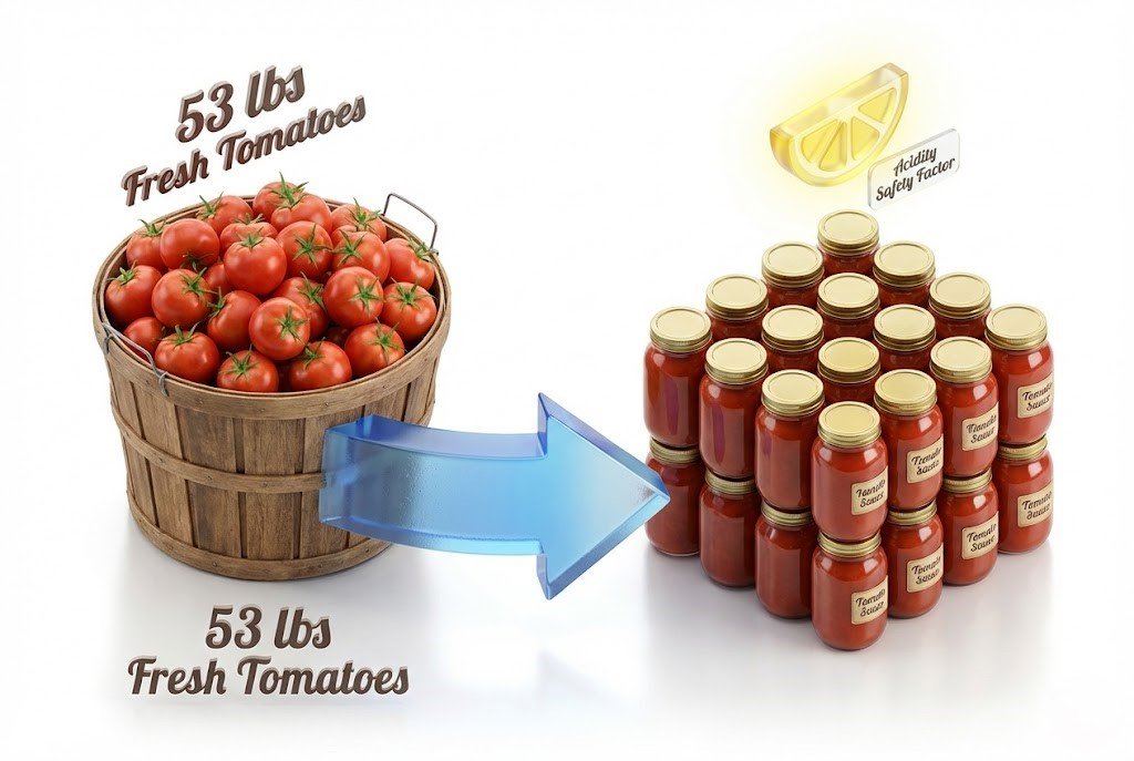 ⚠️ Safety Note: Tomatoes are borderline acidic. Adding 2 tbsp bottled lemon juice per quart is required for safe water-bath canning.