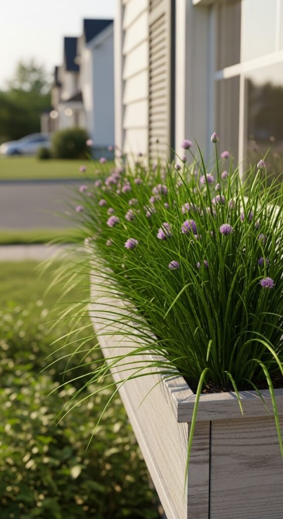 You fill a window box with chives for a lush, overflowing display outside your home. A 24-36 inch box provides ample space.