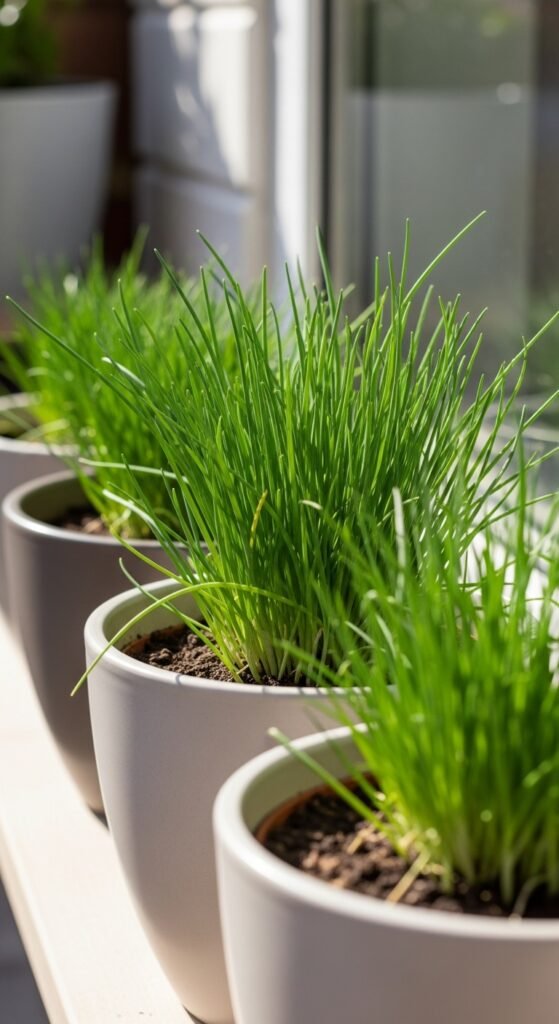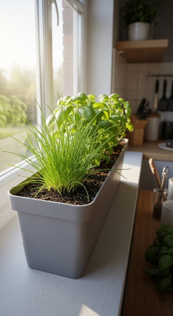 The benefit here is convenience β you’ll have fresh chives at arm’s reach while cooking, encouraging more frequent use in your dishes. It’s space-efficient and brings a touch of green indoors.