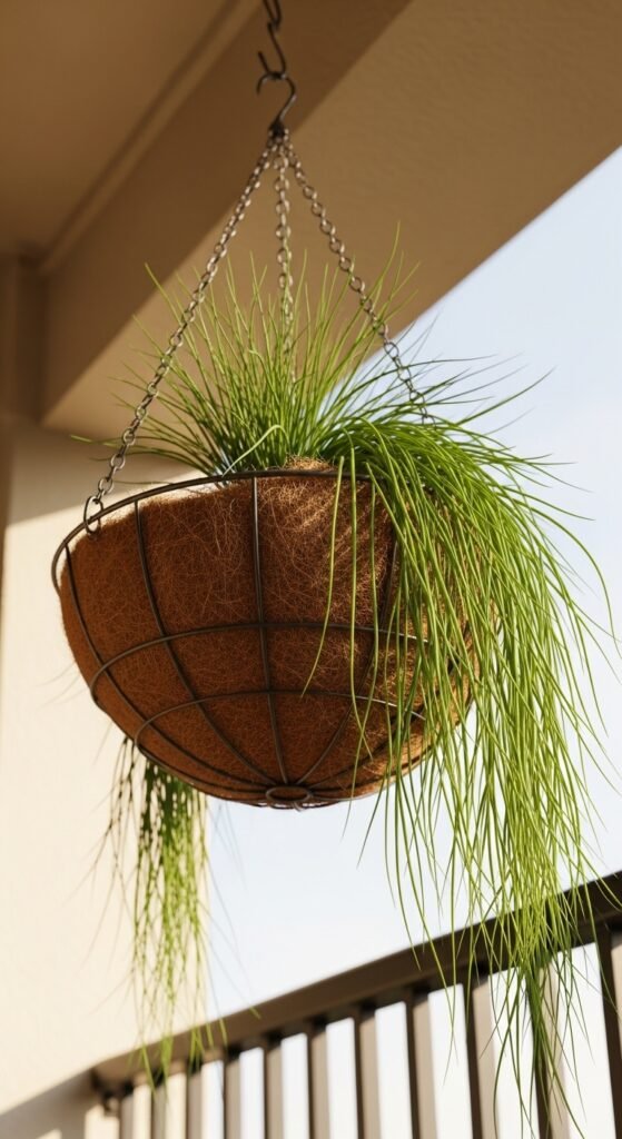 You transform a standard hanging basket into a cascading chive haven, perfect for porches or balconies with limited floor space. Use a 10-12 inch wire basket lined with coco fiber for better aeration.