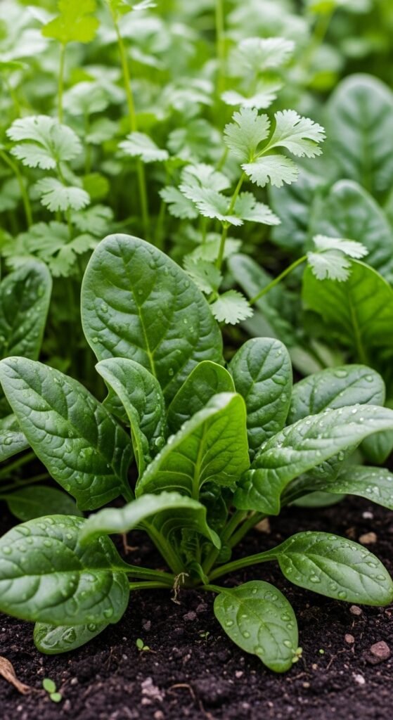 The synergy lies in cilantro’s quick growth complementing spinach’s needs. Direct sow both in cool, moist soil with 6 inch spacing.