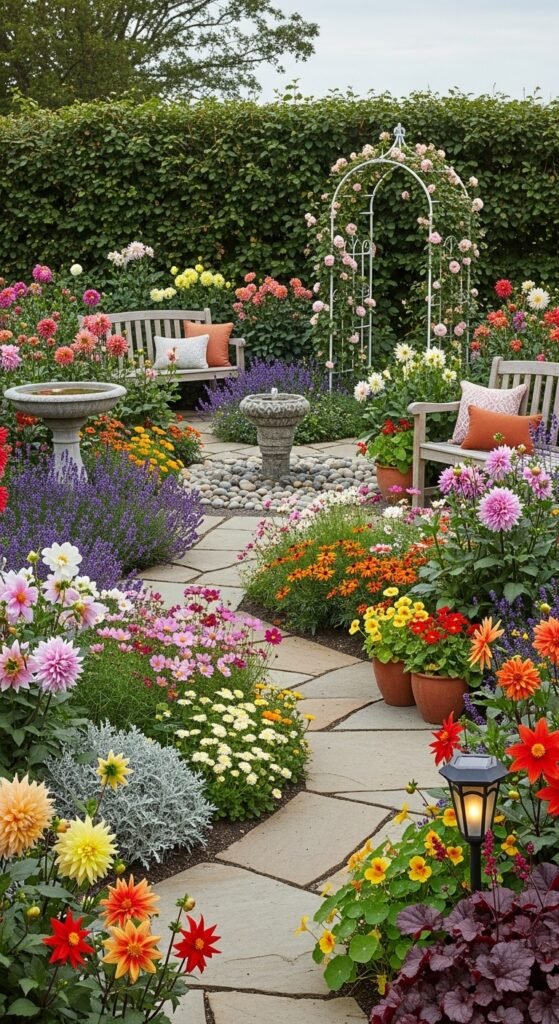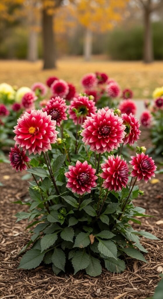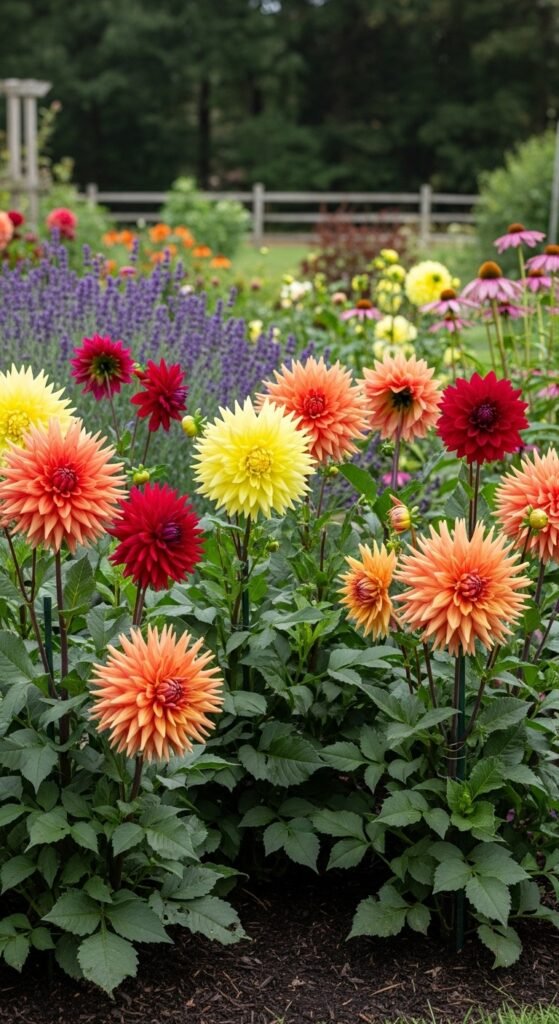 The benefit is extended season interestβdahlias bloom when others fade. However, monitor for slugs in moist areas. Edge cases: Use dwarf types for front edges.