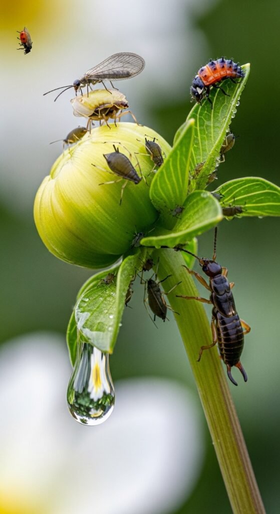 Monitor for aphids and earwigs; use organic soaps or beneficial insects to control without harm.