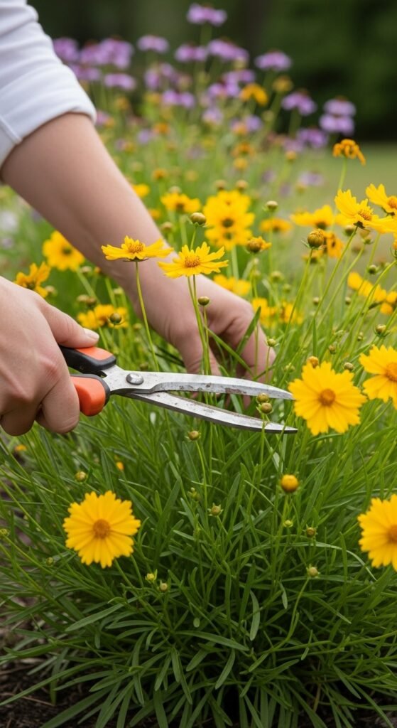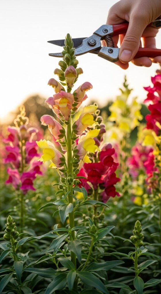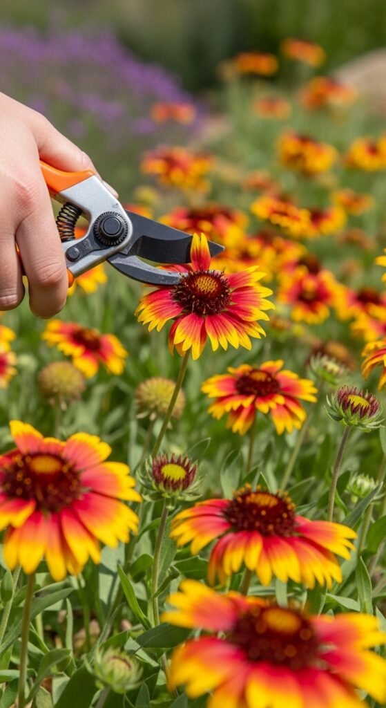 Deadhead in the morning when plants are hydrated, using sharp, sterilized pruners to avoid disease spread. Focus on wilted blooms before seeds form for maximum impact.