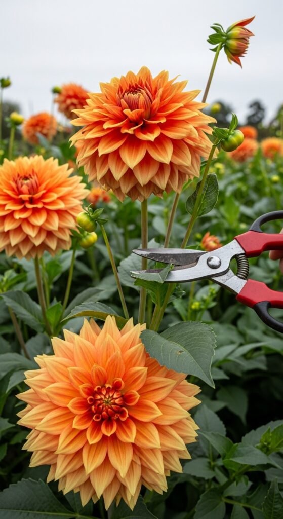 Dahlias boast dinner-plate-sized blooms in striking shapes and hues, making them stars in any cutting garden. Deadheading encourages side shoots, leading to more stems and flowers rather than seed pods. You’ll see an increase in flower production by up to 50%, turning your dahlia patch into a prolific bouquet factory.