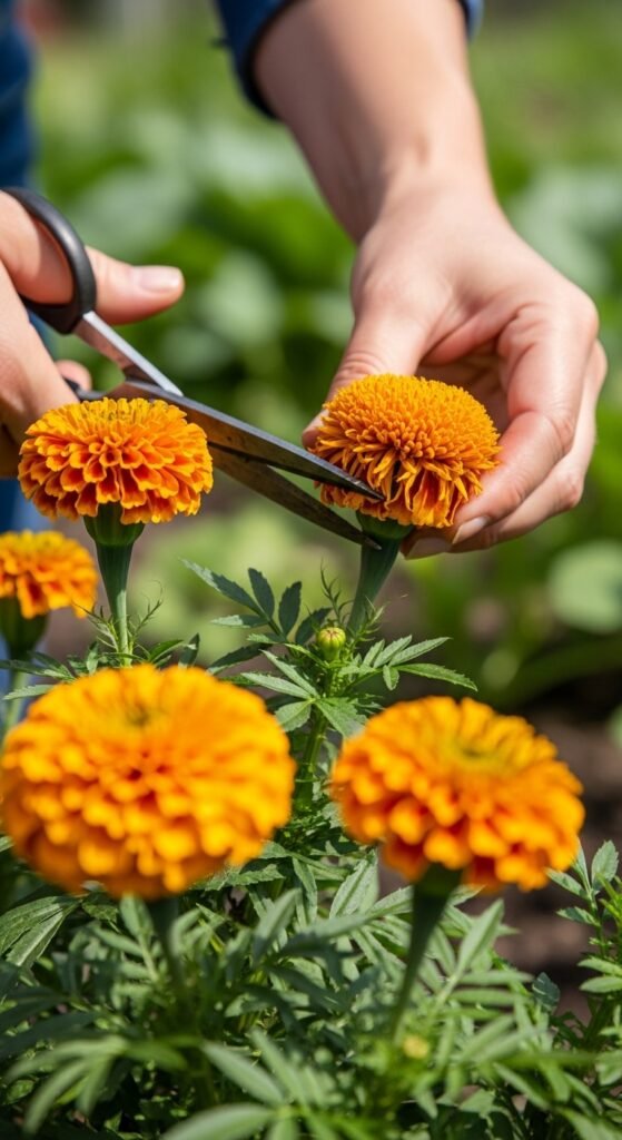 Method: Snip the entire flower head back to the nearest leaf set using scissors. Perform this bi-weekly, and mulch around bases for moisture retention. Your marigolds will thrive, providing both beauty and natural protection for neighboring plants.