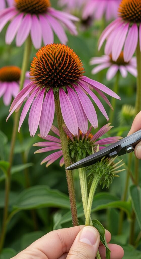 Coneflowers, or echinacea, have daisy petals around cone centers, great for natives. Deadheading strengthens stems and extends bloom time. This enhances winter interest with seed heads, if left later.