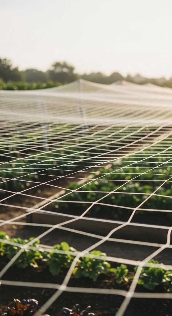 Benefits include adaptable coverage and ease of harvest. Install posts at bed ends, drape netting, and secure tautly.