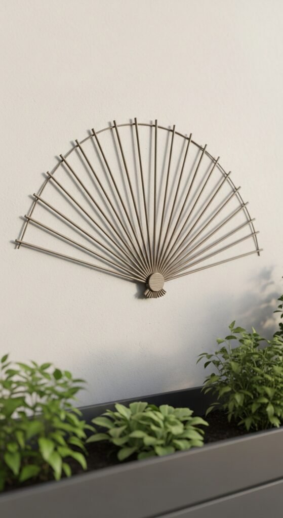 The fan offers decorative flair and efficient coverage. Cut wires or wood in radiating patterns, fastening to a base.