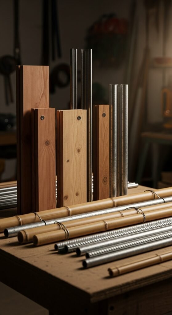 For beginners, start with affordable and easy-to-work materials like bamboo poles or PVC pipes, as they require minimal tools and offer flexibility in design.