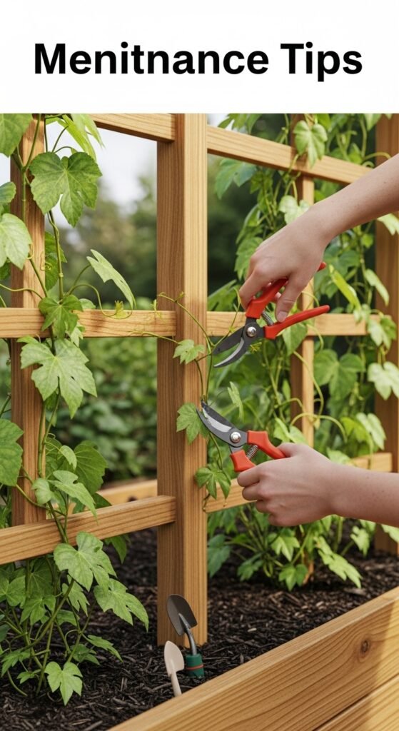 Regularly inspect for stability, prune excess growth, and train vines early. This promotes healthy development and extends the trellis lifespan.