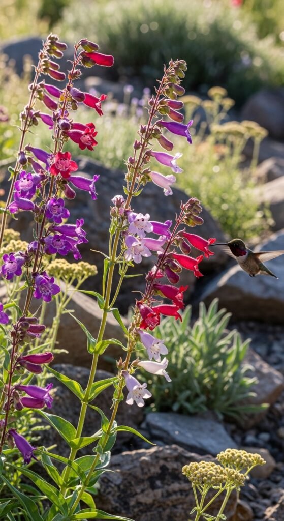 Penstemon features bell-shaped flowers on tall stalks in various colors, thriving in rocky, dry soils. It’s a native favorite for Western gardens.