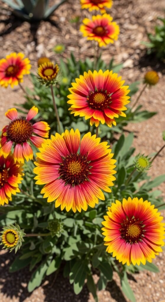 Blanket flower, or Gaillardia, boasts fiery red and yellow daisy blooms that resemble Native American blankets. It’s a heat-loving perennial that excels in dry soils.