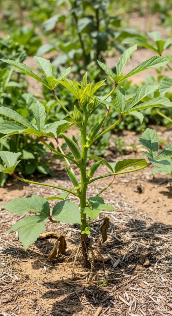 Okra, a warm-season vegetable known for its edible pods, originates from hot, dry regions of Africa, making it naturally suited to drought conditions. Its deep taproot system allows it to access moisture far below the surface, reducing the need for frequent watering once established. This resilience makes okra a top choice for water-wise gardeners, as it can produce abundantly even in arid climates.