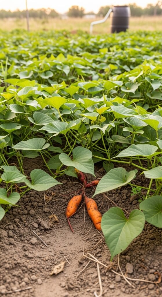 Why it’s drought tolerant: The plant’s thick vines and leaves create natural ground cover, shading the soil to reduce evaporation. This means less watering for you, while still yielding sweet, vitamin-packed tubers perfect for baking, mashing, or frying.