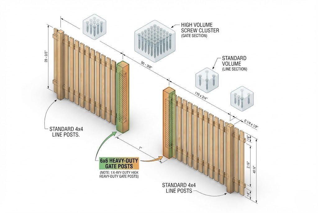 - Gate Detection: A gate isn't just a gap; it's a structural change. Our tool subtracts the 4-foot gate width from your picket count but adds 2 heavy-duty gate posts per gate to your shopping list, as standard line posts can't support the weight of a swinging door.