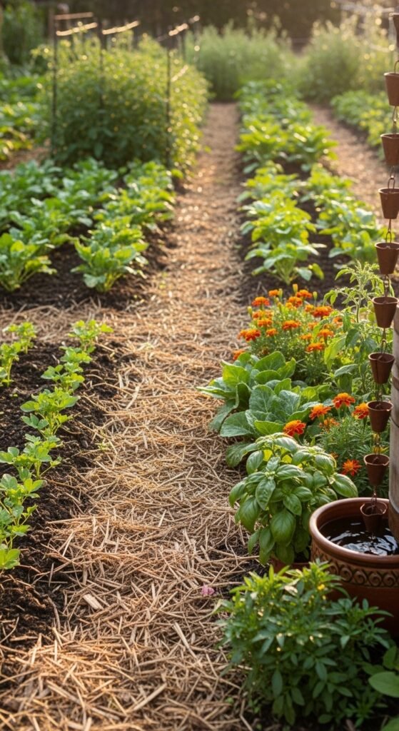 How to plan: Test soil and amend for drainage. Group plants by water needs. Use deep mulch layers. Install rain barrels. For layout tips, visit our drought-tolerant vegetables page. Water deeply at dawn to minimize evaporation and encourage deep roots.