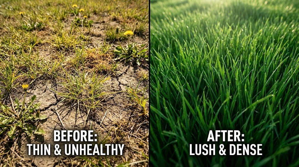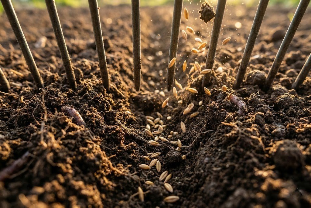 Seed needs soil contact to grow. If you just throw seed on top of hard dirt or dead thatch, it will dry out. Use a rake to loosen the top inch of soil. If your soil is heavy clay, consider reading our guide on using compost to improve soil structure before planting.