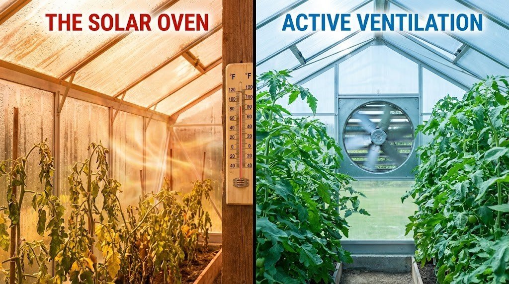 A greenhouse without proper ventilation is just a solar oven. In the summer, temperatures inside can skyrocket 20-30 degrees higher than the outside air, cooking your plants in minutes. The key to keeping them cool isn’t just opening a doorβ€”it’s active exhaust.