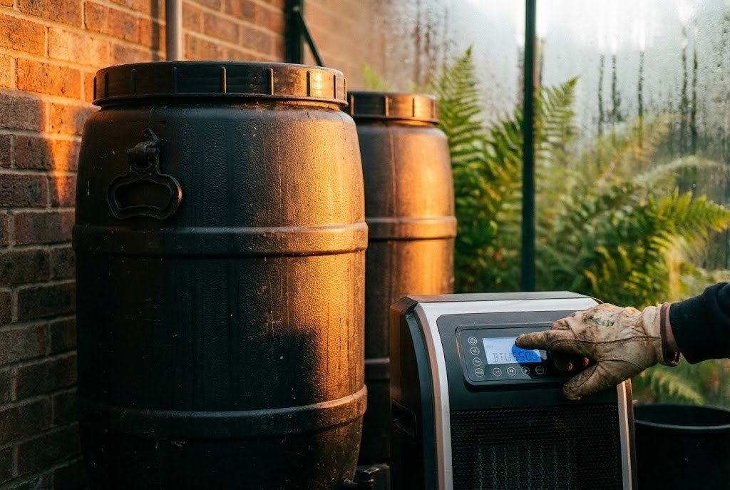 To reduce your BTU needs, consider thermal mass. Placing black barrels of water inside the greenhouse allows them to soak up solar heat during the day and release it at night, effectively “shaving off” the peaks of your heater’s workload.