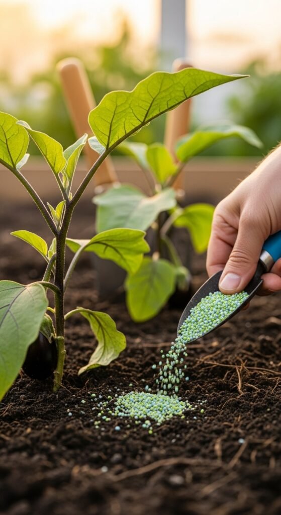 Feed your eggplants with a balanced 10-10-10 fertilizer every 4-6 weeks after transplanting. This supplies essential nutrients for robust stems and abundant yields. Opt for organic options to enhance soil health long-term.