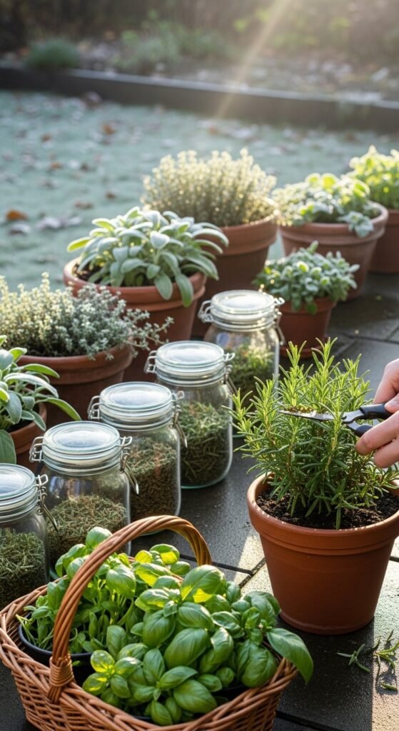 Before winter, harvest tender herbs fully and preserve them, while trimming perennials lightly. This protects against cold and sets up for spring regrowth. Freezing or drying extends usability. For rosemary, this ensures survival in pots. It concludes the season productively, readying for renewal.