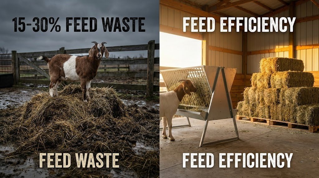 The “Secret Sauce” of our tool is the 15% Waste Buffer. Most generic feed calculators assume 100% efficiency. Any goat owner knows this is a fantasy. Goats are “browsers,” meaning they like to sift through food to find the tastiest stems. Without a specialized waste-reducing feeder, they can waste up to 30% of their hay.