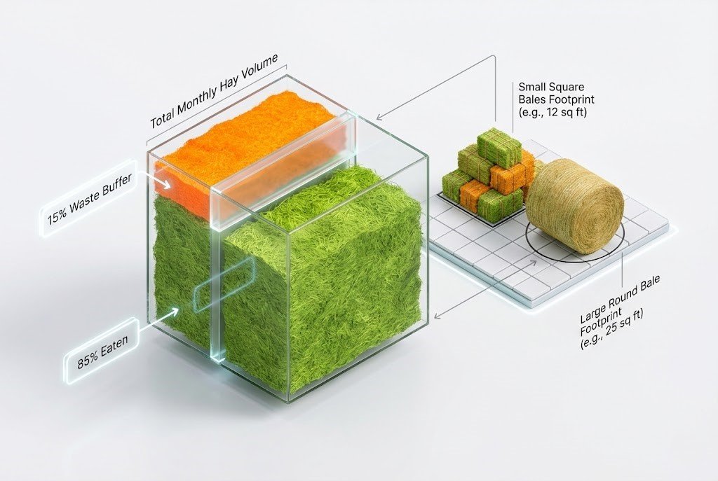 • Space: Use the “Barn Storage” result in our tool to ensure your hay loft or shed is big enough before the delivery truck arrives.