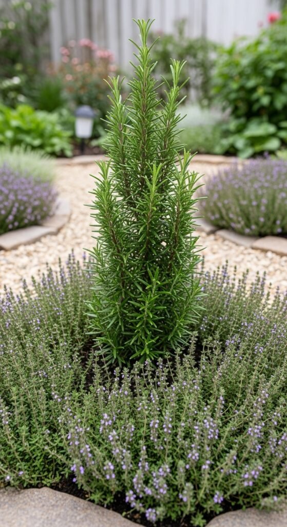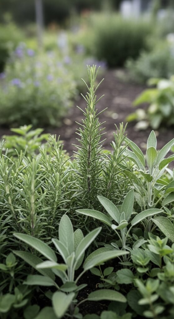 Pair nitrogen-fixers such as beans with heavy feeders like rosemary to maintain soil fertility without additional fertilizers.