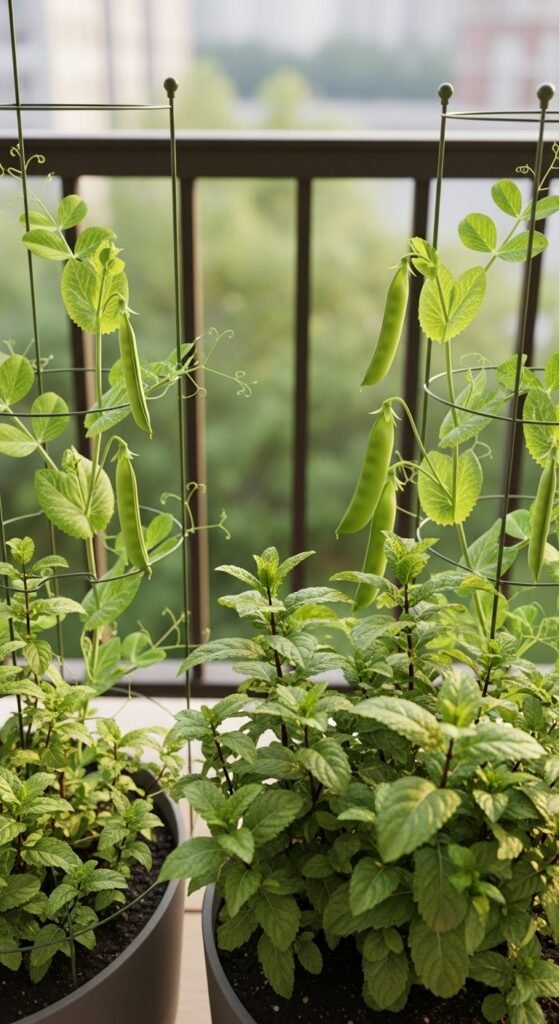 For balcony adaptations, our balcony herb garden offers space-saving tips. You’ll harvest more flavorful peas and abundant mint leaves for teas and cuisines.