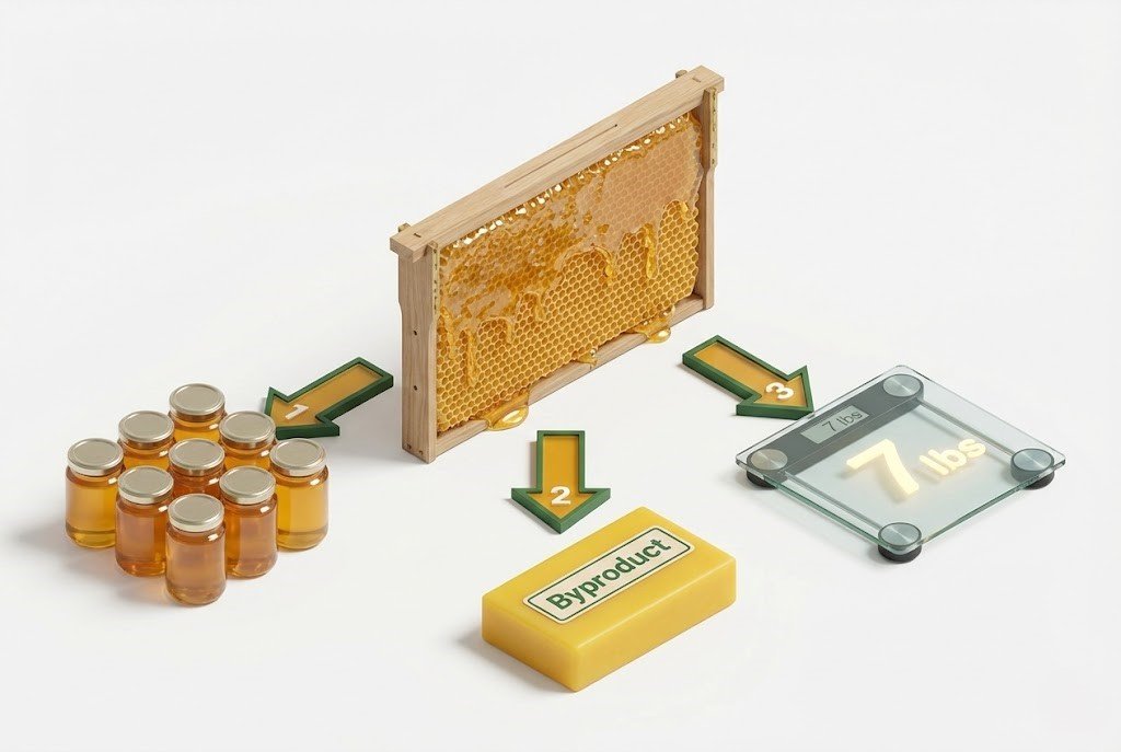 The “Secret Sauce” of our tool is the Beeswax Estimator. Many new beekeepers throw away the wax cappings, not realizing that for every 60 lbs of honey, you can harvest nearly a pound of pure beeswax.