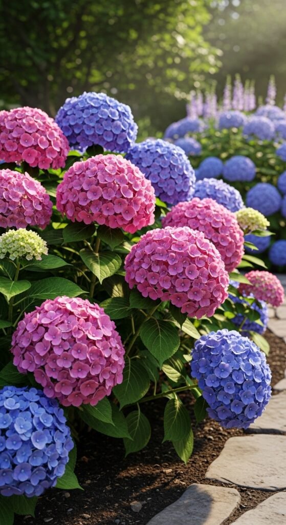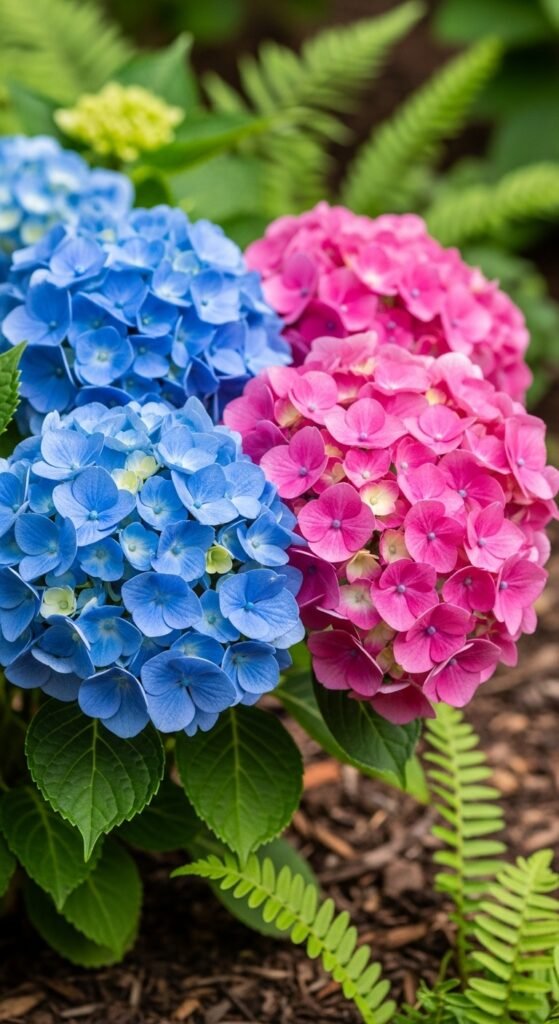 Plant a mix of blue, pink, and white varieties together for a multicolored spectacle. Adjust soil pH in zones to create intentional gradients.