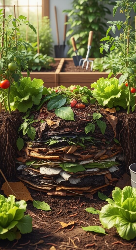 You can create a nutrient-rich organic fertilizer by composting kitchen scraps, yard waste, and other organic materials right at home. This method recycles waste into valuable soil amendment, packed with nitrogen, phosphorus, and potassium essential for vegetable growth. Compost improves soil texture, increases moisture retention, and encourages earthworm activity, leading to healthier roots and better yields.
