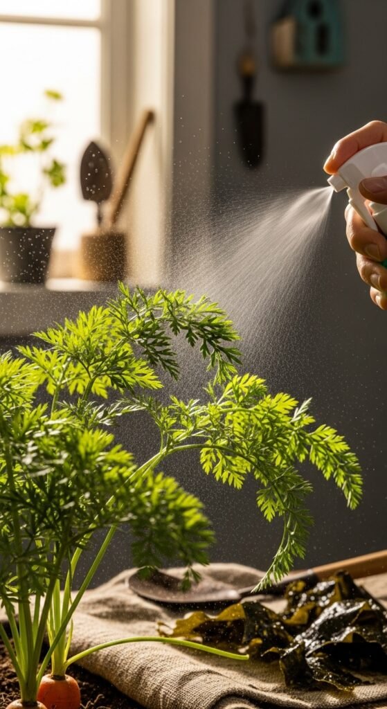 You use seaweed extract, harvested from ocean kelp, as a foliar spray or soil additive packed with trace minerals, hormones, and vitamins to boost vegetable immunity and growth.
