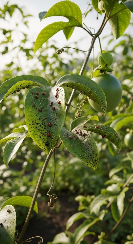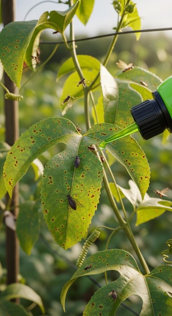 Adopt an integrated approach in passionfruit vine care by combining cultural, biological, and minimal chemical controls. Encourage beneficial insects, maintain hygiene, and use targeted treatments only when necessary, reducing reliance on pesticides and fostering a sustainable garden ecosystem.
