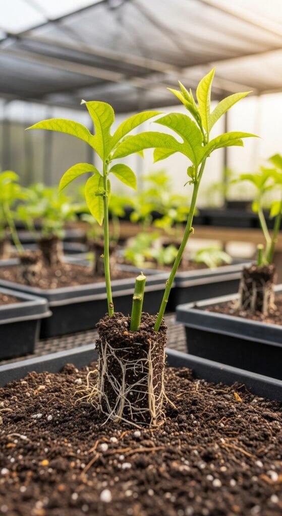 Expand your garden through passionfruit vine care by propagating via cuttings or seeds. Take semi-hardwood cuttings in summer, rooting in moist soil under humidity for new plants.