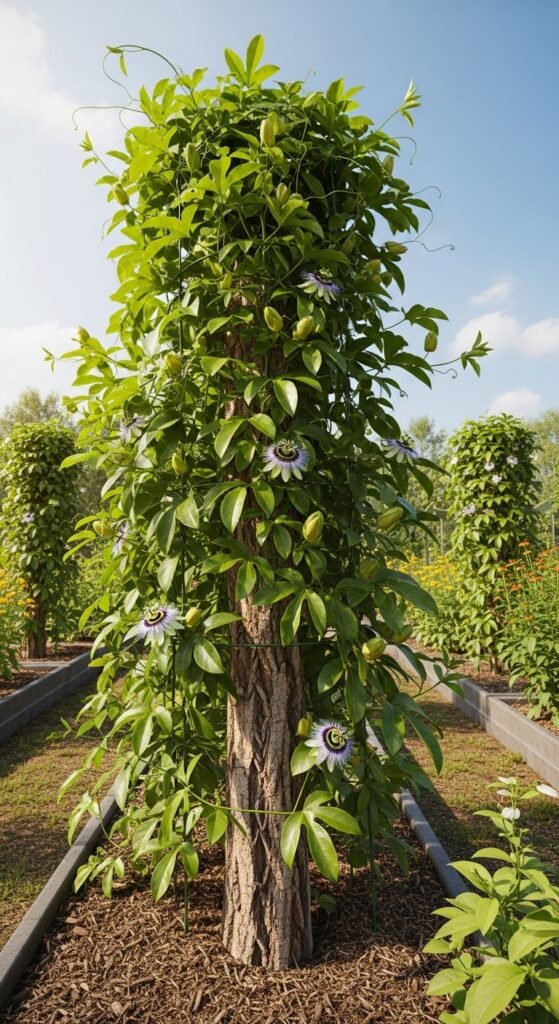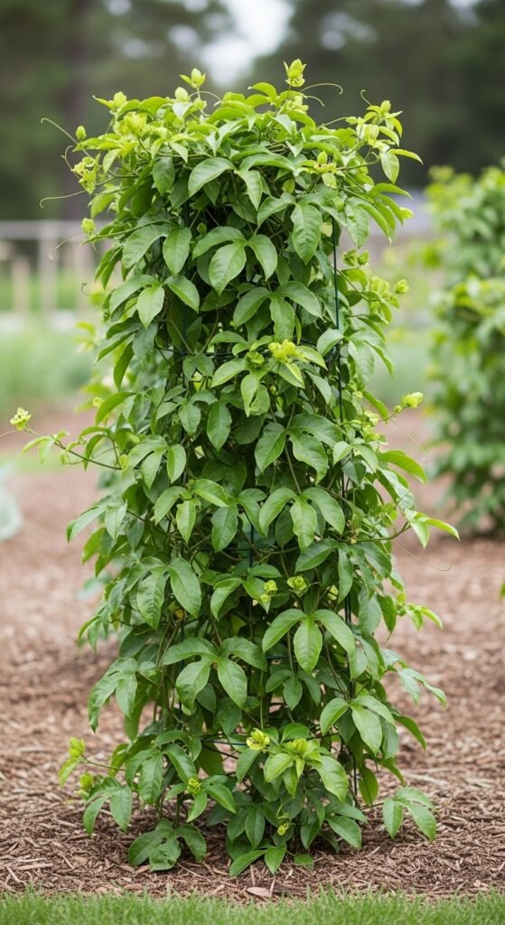 Passionfruit vines are vigorous climbers needing strong supports as part of essential care. Install a trellis, arbor, or wire framework at planting to guide growth upward, preventing tangling and improving sun exposure. Materials like galvanized wire or bamboo offer durability against the vine’s weight when fruit-laden.
