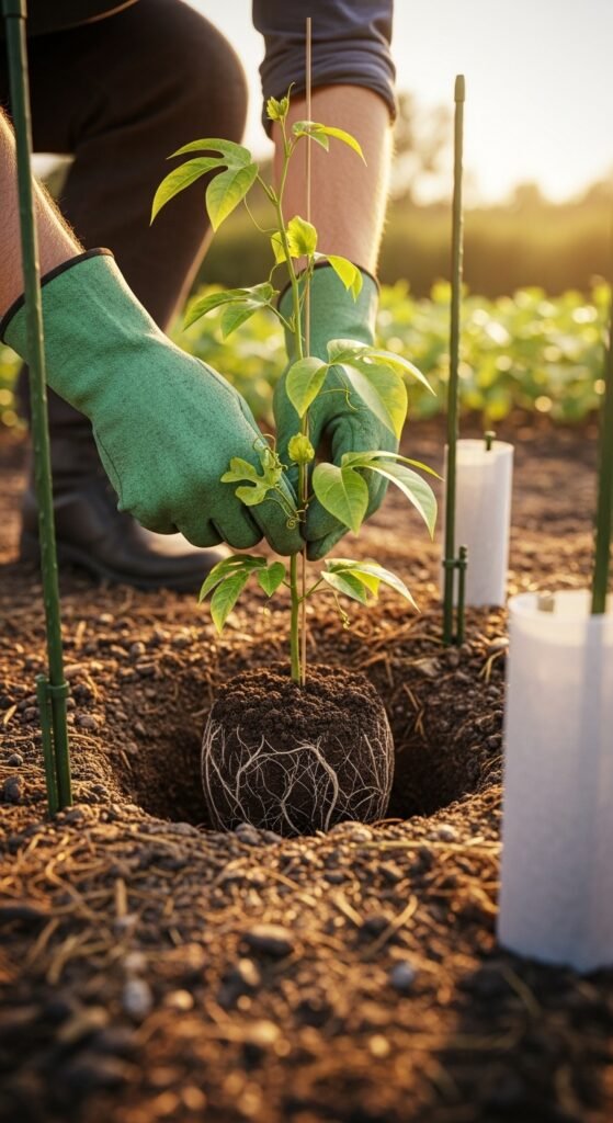 Water deeply after planting to settle soil, then mulch around the base. In cooler climates, use row covers for protection. Monitor for settling and adjust soil as needed. This method encourages deep rooting, resilience to drought, and early flowering, setting your vine up for success from the start.